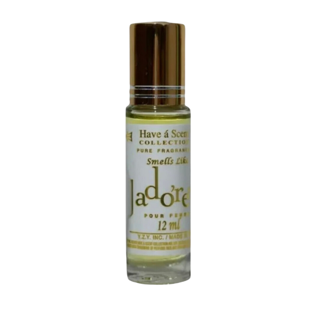 Travel size perfume oil in a 12ML rollerball bottle. Smells like Dior J’adore.
