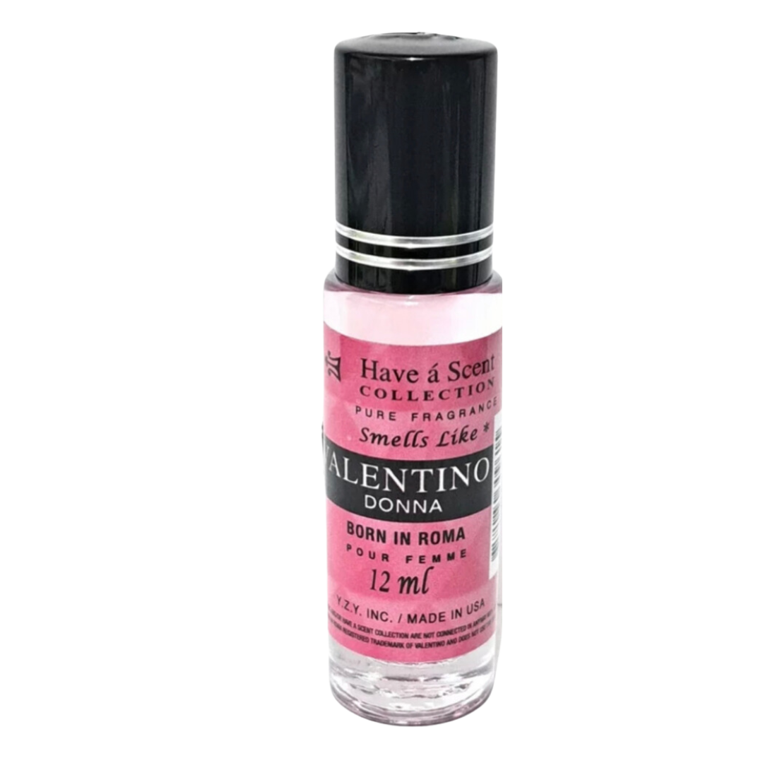 Travel size perfume oil in a 12 ML rollerball bottle. Smells like Valentino Donna born in rome.
